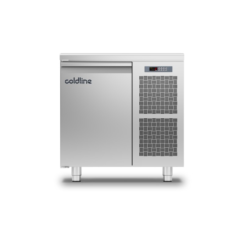 • Angles intérieurs arrondis • Plan de travail renforcé épaisseur 40 mm avec bords arrondis • Évaporateur ventilé • Pieds inox réglables en hauteur • Portes avec maintien en position ouverte à 105° • Joints de porte magnétiques facilement démontables • Groupe livré d’origine à droite, positionnable sur demande à gauche sans supplément de prix • Emplacement du compresseur insonorisé et avec aération frontale • Groupe logé sur glissières facile à extraire • Évaporateur traité anti-corrosion • Dégivrage automatique par gaz chaud • Réévaporation automatique des condensats • Gaz réfrigérant R290 (groupe logé), R452a (sans groupe) • Thermostat électronique • Affichage digital • Alimentation 220/240 - 50Hz