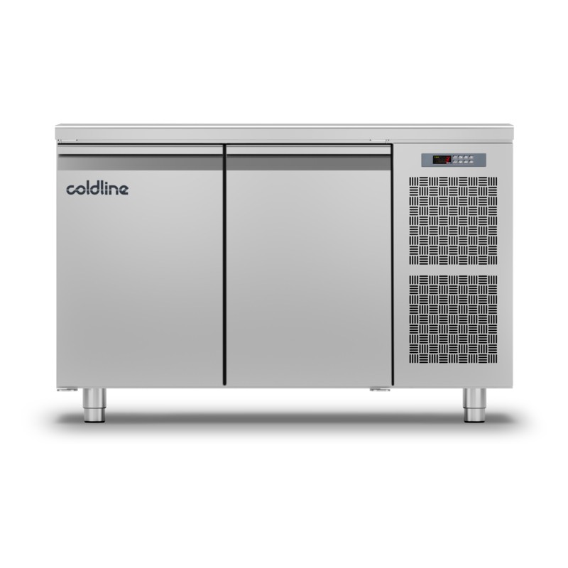 • Angles intérieurs arrondis • Plan de travail renforcé épaisseur 40 mm avec bords arrondis • Évaporateur ventilé • Pieds inox réglables en hauteur • Portes avec maintien en position ouverte à 105° • Joints de porte magnétiques facilement démontables • Groupe livré d’origine à droite, positionnable sur demande à gauche sans supplément de prix • Emplacement du compresseur insonorisé et avec aération frontale • Groupe logé sur glissières facile à extraire • Évaporateur traité anti-corrosion • Dégivrage automatique par gaz chaud • Réévaporation automatique des condensats • Gaz réfrigérant R290 (groupe logé), R452a (sans groupe) • Thermostat électronique • Affichage digital • Alimentation 220/240 - 50Hz
