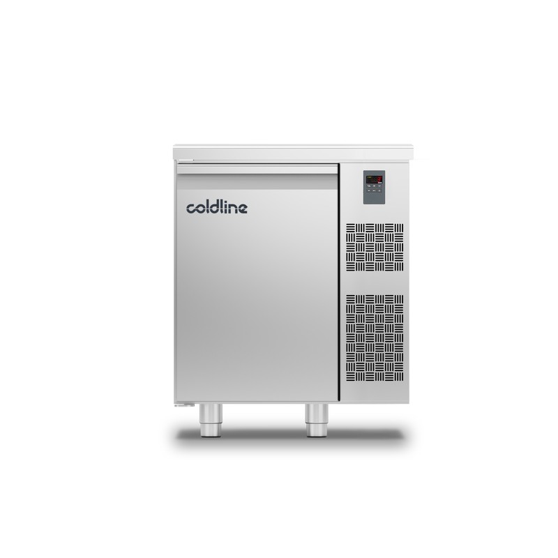 • Angles intérieurs arrondis • Plan de travail renforcé épaisseur 40 mm avec bords arrondis • Évaporateur ventilé • Pieds inox réglables en hauteur • Portes avec maintien en position ouverte à 105° • Joints de porte magnétiques facilement démontables • Groupe livré d’origine à droite, positionnable sur demande à gauche sans supplément de prix • Emplacement du compresseur insonorisé et avec aération frontale • Groupe logé sur glissières facile à extraire • Évaporateur traité anti-corrosion • Dégivrage automatique par gaz chaud • Réévaporation automatique des condensats • Gaz réfrigérant R290 (groupe logé), R452a (sans groupe) • Thermostat électronique • Affichage digital • Alimentation 220/240 - 50Hz