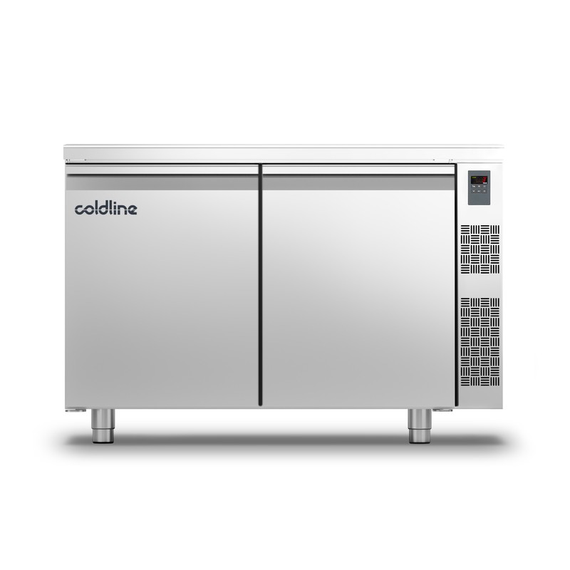 • Angles intérieurs arrondis • Plan de travail renforcé épaisseur 40 mm avec bords arrondis • Évaporateur ventilé • Pieds inox réglables en hauteur • Portes avec maintien en position ouverte à 105° • Joints de porte magnétiques facilement démontables • Évaporateur traité anti-corrosion • Dégivrage automatique par gaz chaud • Réévaporation automatique des condensats • Gaz réfrigérant R290 (groupe logé), R452a (sans groupe) • Thermostat électronique • Affichage digital • Alimentation 220/240 - 50Hz